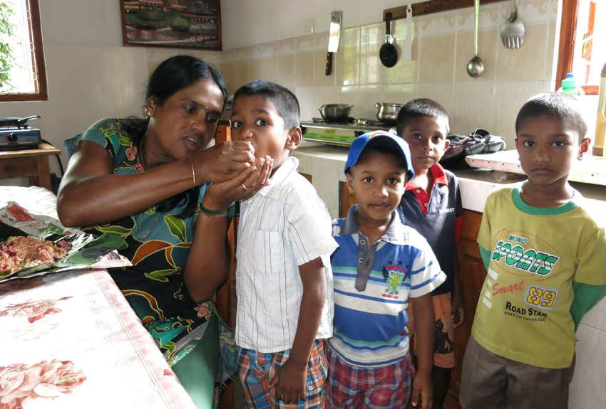 Ihre eigenen vier Kinder sind aus dem Gröbsten und so kann sich unsere Hill-Top-Mama Bawani noch mehr um die ihr anvertrauten Jungs kümmern. 24 leben derzeit in unserem Bubenhaus und jeder Einzelne will Beachtung, Fürsorge und Liebe. Ganz verrückt sind nicht nur, aber besonders die Kleinen darauf, von ihrer Amma gefüttert zu werden.
